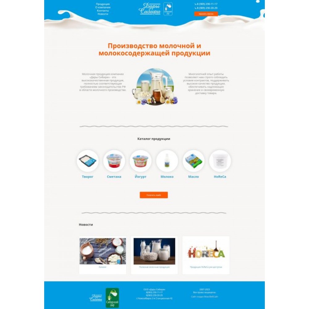 Сайт производителя молочной продукции от веб-студии Максвебсайт г. Качканар